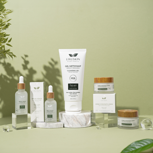 Le Kit Soin Complet au Thé Vert offre un rituel beauté essentiel pour une peau équilibrée et radieuse. Purifie, traite, et hydrate pour une peau nette et uniforme.